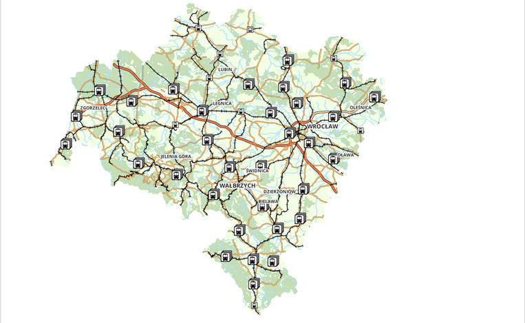 Railway and bus stations according to information from the BDOT10k Database.