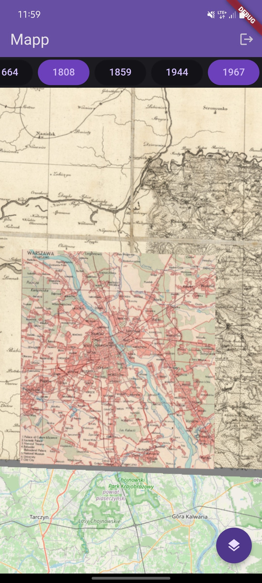 An application that displays archival georeferenced maps on top of a modern OSM map