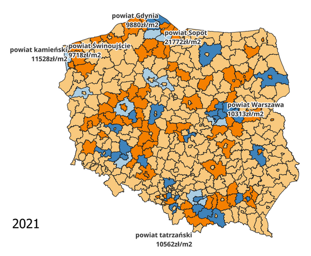 Research on the number of new apartments concerning resident inflow/outflow at the county level using data from the Central Statistical Office.